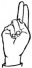 На ћирилици написано РАДНА РАДОЈИЧИЋ састоји се из 14 слова [?]. Исписано ћириличном једноручном азбуком за глувонеме: